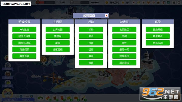 游戏背景一款极具欢乐意义的策略类战棋游戏,在这个充满卡通画风的虚拟世界中,玩家将会和一系列的小动物进行整治上的较量,例如腐败的鳄鱼或者社会精英小老鼠等等,上演着一出出滑稽的闹剧和腐败的新闻。虽然都是一个个卡通的动物形象,但各自暗地里的阴谋会让你措手不及,其讽刺意味过于明显,你又能获得这一次次的斗争胜利吗? 该游戏是设定在一个虚构的世界,并且同各种各样的小动物进行选举的模拟游戏。在其中会充满着各种各样的政治斗争,腐败总是在暗处隐藏着,我们希望玩家能找出它们公之于众。在这个世界里,腐败无处不在,所有的角色都是动物,或许你不知道这个世界有多么残酷?你会为你的竞选活动和人民的最大利益而斗争吗?或者你会屈服于贿赂和恐吓的更简单的道路吗?你会赢得选票,还是你会收买他们? 游戏玩法每回合花费点数来移动政治版图上的候选者与幕僚,令其四处奔走、八方呐喊来求得民众的支持和豪绅的襄助。每位幕僚的选择都会影响你的整体布局:律师负责处理丑闻;牧师事从鼓动兽心。从有钱动物们那里募集资金、送礼来收买代表、举办集会来争取草根们的支持。选举之路上,那些真假难辨的丑闻或者难以预料的突发事件会为一次又一次地为你的品性带来艰难考验。