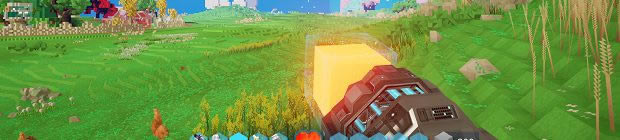 方块发射器是一个超棒的武器,它可以承载游戏中的任何方块并把他们扔向敌人。不同的方块的攻击效果也会有所不同。除了攻击,如果你将光块往山洞的墙上扔去,它可以照亮山洞。 EA版本中的战斗特点: -5种武器:手枪,来福枪,方块发射器,音速卡宾枪以及手雷 -1种护甲,可以很大程度的减少伤害 -6种不同敌人(Arkuloids, Cognitrons, Legionnaire robots, Plasma turrets, Tesla pylons) -堡垒中的大boss 【建造】