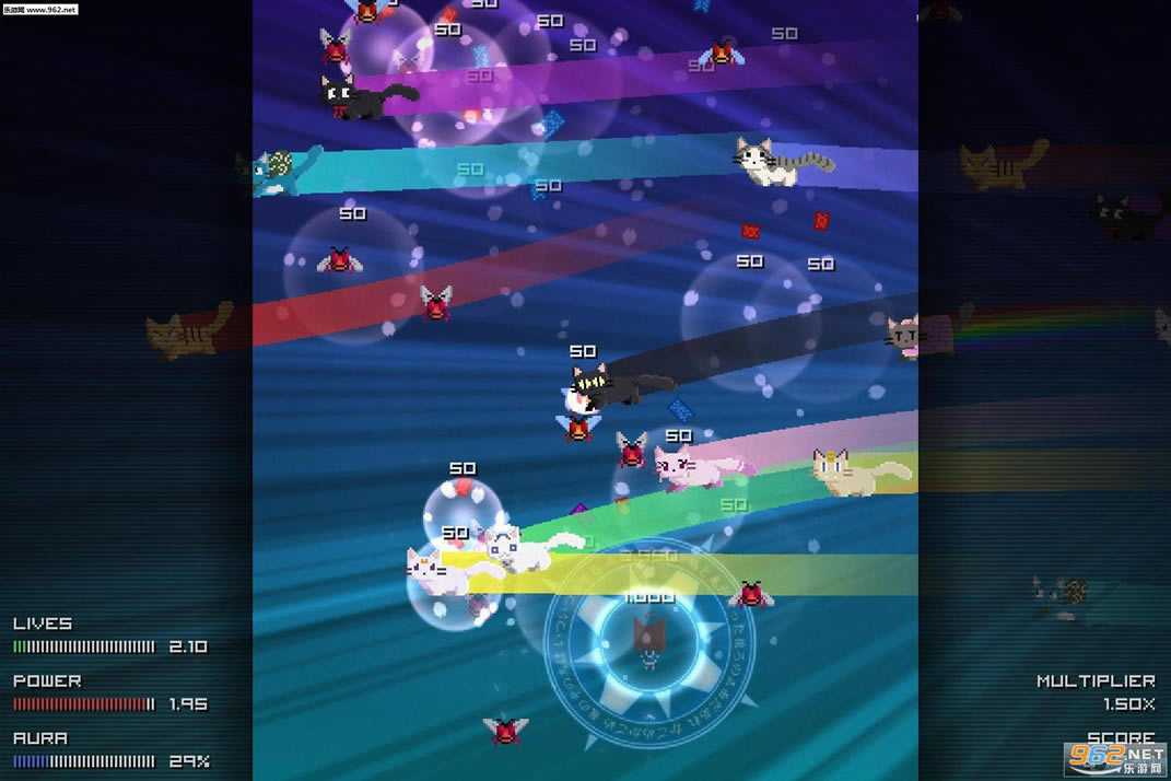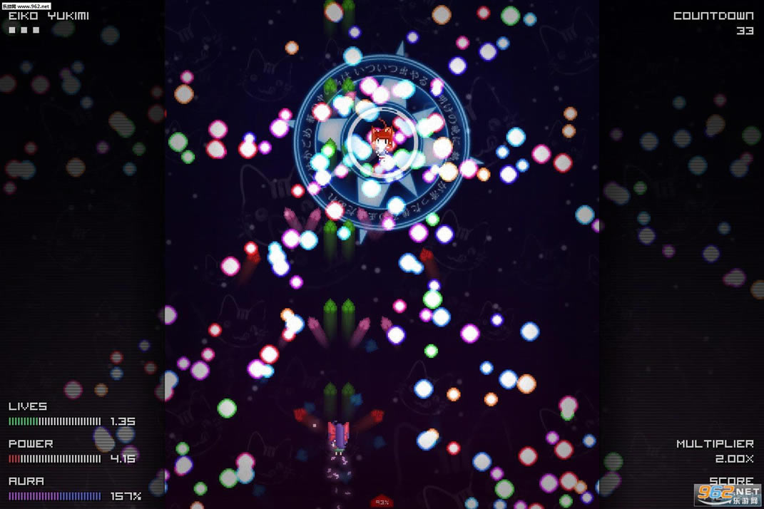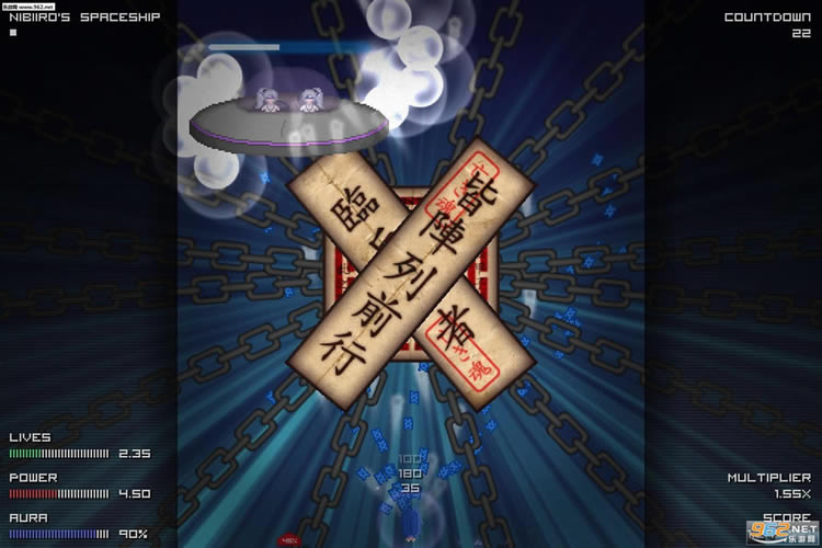 游戏玩法 左下角有三项数值,绿色的生命,红色的力量和紫色的bomb。 生命最多有4条,吃绿块可以补。不过回复的速度特别慢,打到终面也攒不到多少条命。 力量:最多是加到4级。力量多的话攻击范围会变广,每死一次-1。 bomb:最多是200%。每用一次大招-100%。被敌人打中后会有5秒的决死时间,这时使用大招的话就不会死。 可以满命复活两次。 一共五面。 角色