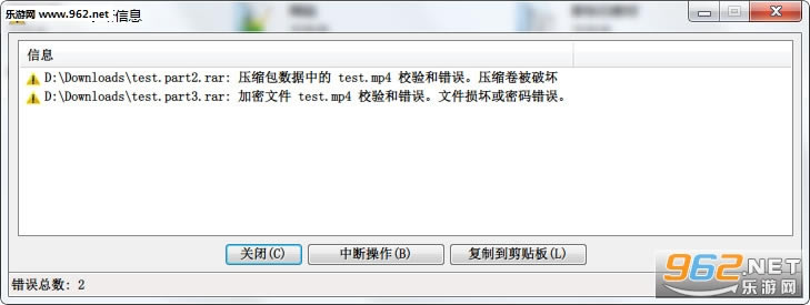 遇到这种情况在没有MD5校验的情况下,大致可以判断到part2和part3有问题,由于压缩包添加了恢复记录,可以尝试进行修复压缩包: ①winrar打开压缩包part2,点击工具——修复压缩文件