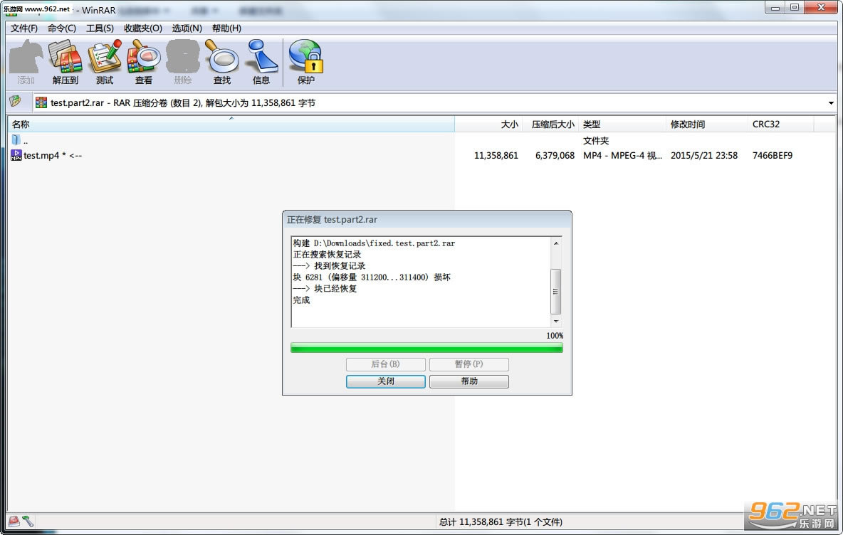 ⑤重新解压,若果修复成功的话你会发现全程无错并解压出文件