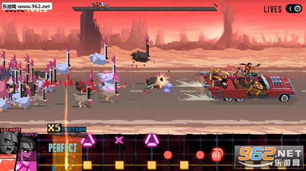 | 《鼓点英雄(Double Kick Heroes)》是一款让你玩得High得睡不着的节奏射击游戏。在传统的射击游戏中融入了弥漫着“死亡”的硬核金属!摁下随之而来的鼓点,随着摇滚车的节奏干掉那些玩儿命追你的丧尸们! 游戏介绍《鼓点英雄(Double Kick Heroes)》是由Headbang Club独立制作并发行的一款快节奏音乐射击类游戏! 你将驾驶枪迪拉克,在地狱高速上杀出一条血路!在微像素的艺术中迎着随之而来的鼓点,挑战那些不可能的事情!